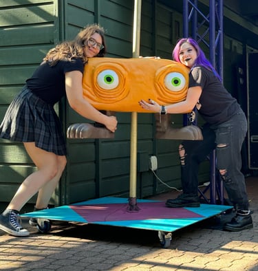 A few weeks later, Natalie noticed a purple gremlin sitting in the empty dining court. As she clocked out, Nat walked up to the booth the gremlin was sitting at and asked "